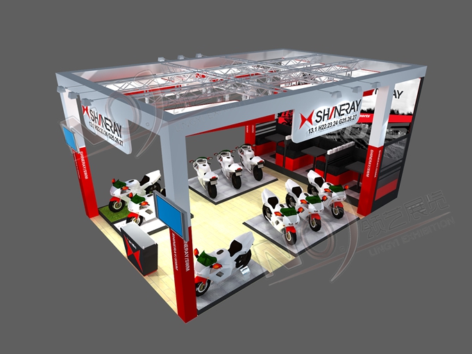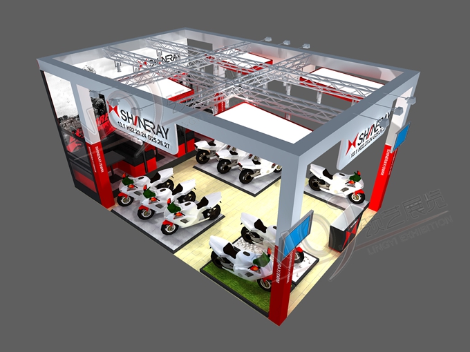 契合鑫源摩托的品牌形象和產(chǎn)品特性,采用矩形結(jié)構(gòu),再搭配燈具燈光的效果,襯托出展位簡(jiǎn)約、時(shí)尚的氛圍,突出一種現(xiàn)代、簡(jiǎn)約的時(shí)尚品味。