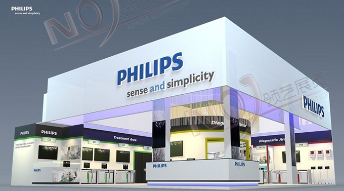 契合的飛利浦品牌形象和產(chǎn)品特性,采用矩形結構,再搭配燈具燈光的效果,襯托出展位高端、時尚的氛圍,突出一種現(xiàn)代、歐美的時尚品味。