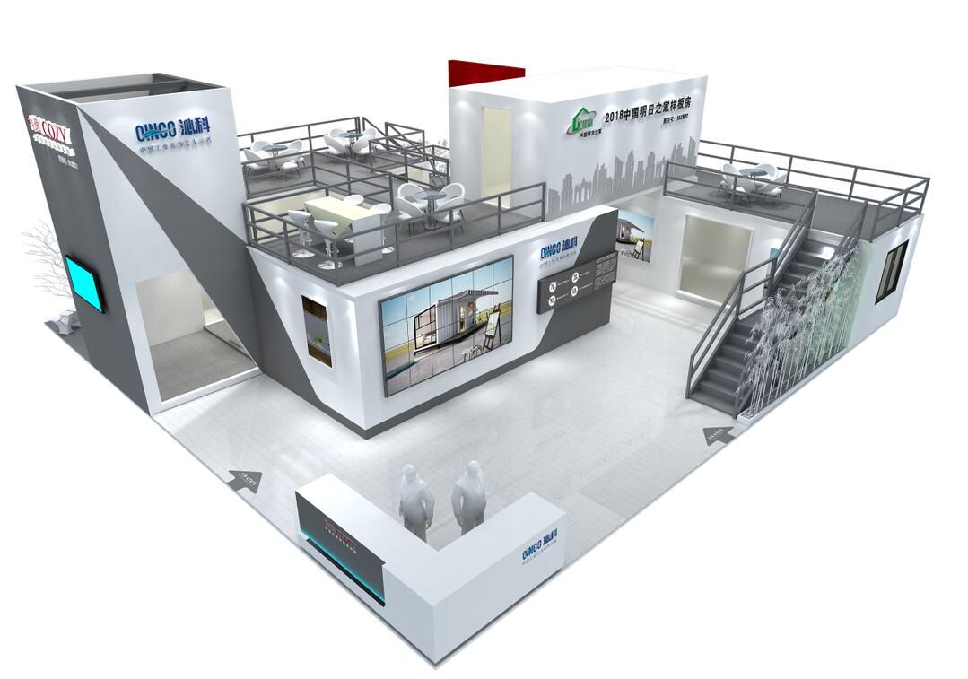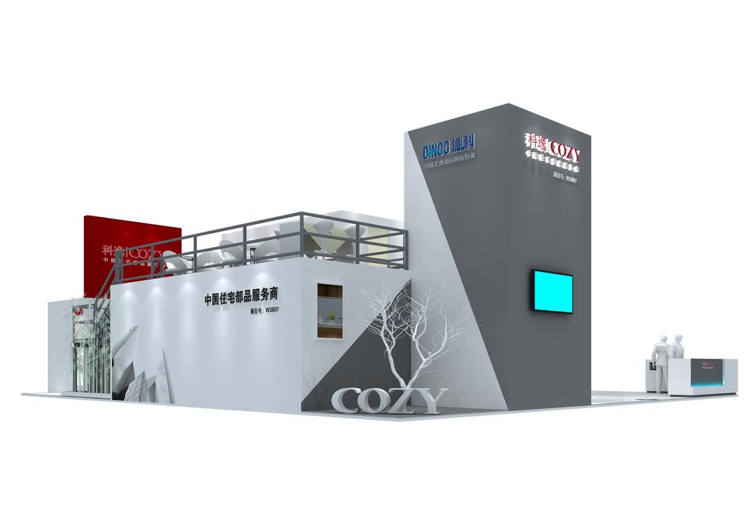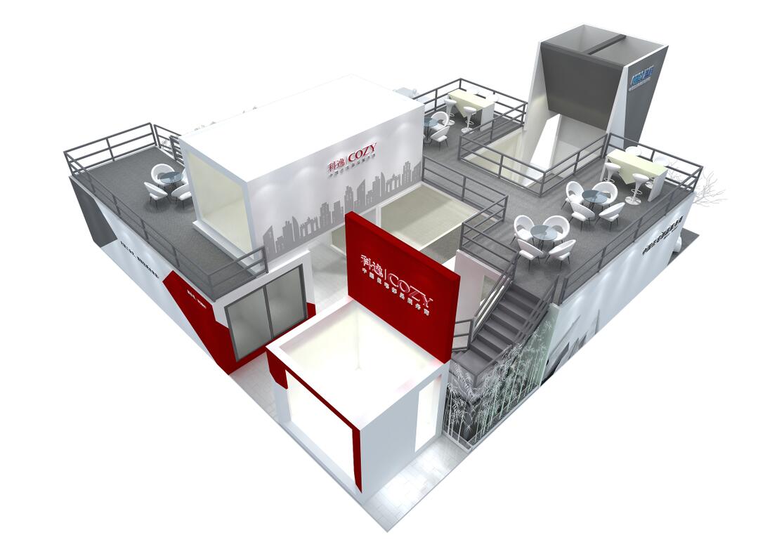 契合蘇州科逸品牌形象和產品特性,運用雙層不對襯的效果。再搭配植物、燈具燈光的效果,襯托出展位現(xiàn)代、突出一種現(xiàn)代、高端的時尚品味。