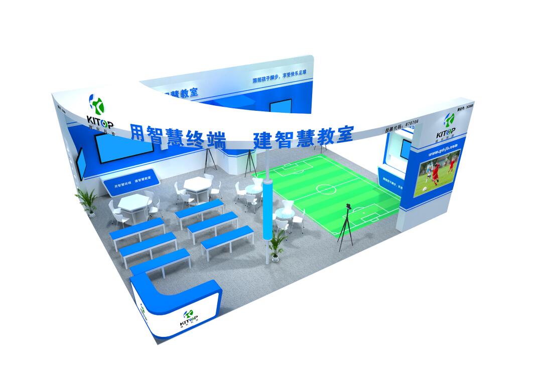 巧妙的運(yùn)用白色搭配藍(lán)色,突出品牌和產(chǎn)品的展示,使整個(gè)展位高檔大氣