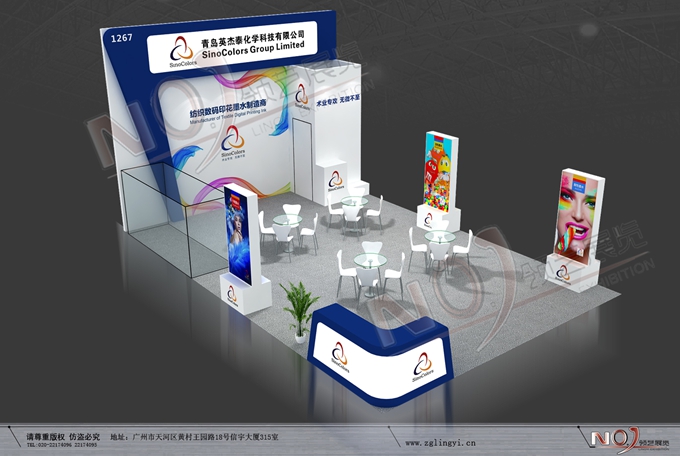 巧妙的運(yùn)用藍(lán)色、白色作為搭配,著重突出品牌和產(chǎn)品的展示,使整個(gè)展位時(shí)尚新穎又大氣。