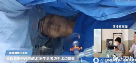 新京報(bào)“我們視頻”昨天直播一場(chǎng)手術(shù),記錄下這樣的畫面:切開頭顱,還能繼續(xù)聊天。