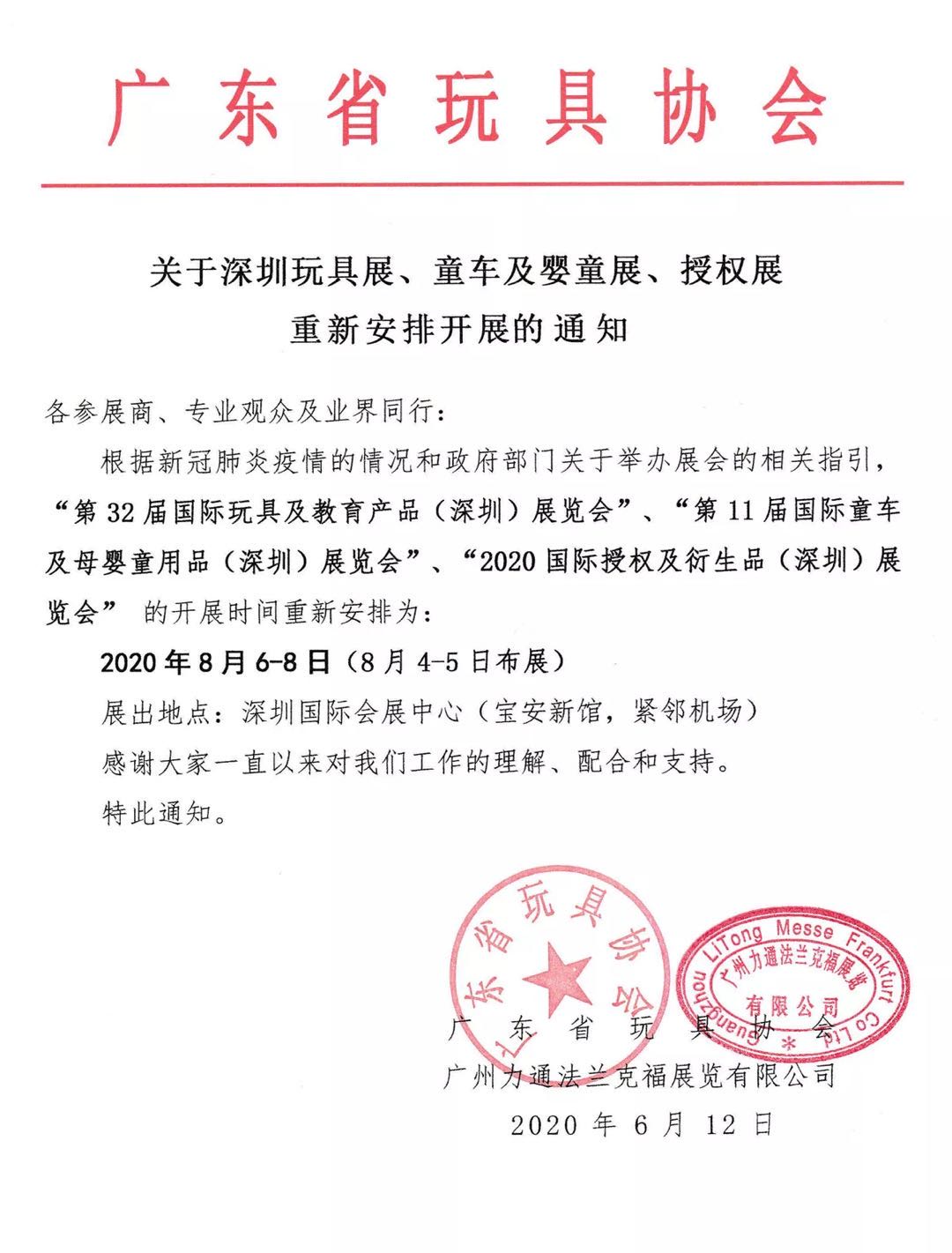 為進一步促進玩具、教育和嬰童及IP授權(quán)產(chǎn)業(yè)發(fā)展,為我國廣大兒童提供更多優(yōu)質(zhì)新穎的相關(guān)產(chǎn)品,引領(lǐng)新消費提振內(nèi)需,繁榮國內(nèi)流通市場,廣東省玩具協(xié)會、廣州力通法蘭克福展覽有限公司、法蘭克福展覽(香港)有限公司將于2020年8月6-8日,在深圳國際會展中心(寶安新館)共同舉辦“第32屆國際玩具及教育產(chǎn)品(深圳)展覽會”“第11屆國際童車及母嬰童用品(深圳)展覽會”“2020國際授權(quán)及衍生品(深圳)展覽會”(下統(tǒng)稱“深圳玩具展”)。