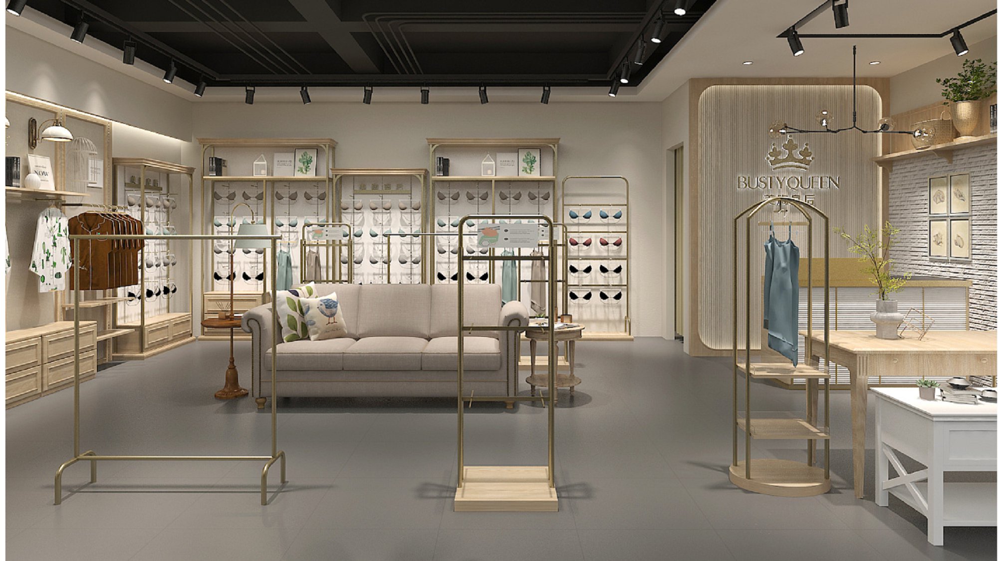 契合美胸皇后的品牌形象和產(chǎn)品特性,采用開放式結(jié)構(gòu)進行合理的分區(qū),再搭配燈具燈光的效果,襯托出專賣店大氣、豪華的氛圍,突出一種簡約、時尚的品味。