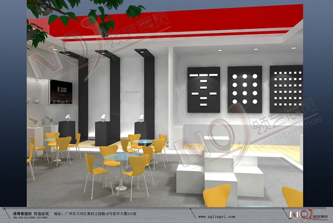 契合奇光的品牌形象和產(chǎn)品特性,采用矩形結(jié)構(gòu),再搭配燈具燈光的效果,襯托出展位時尚、簡約的氛圍,突出一種現(xiàn)代、活力的時尚品味。