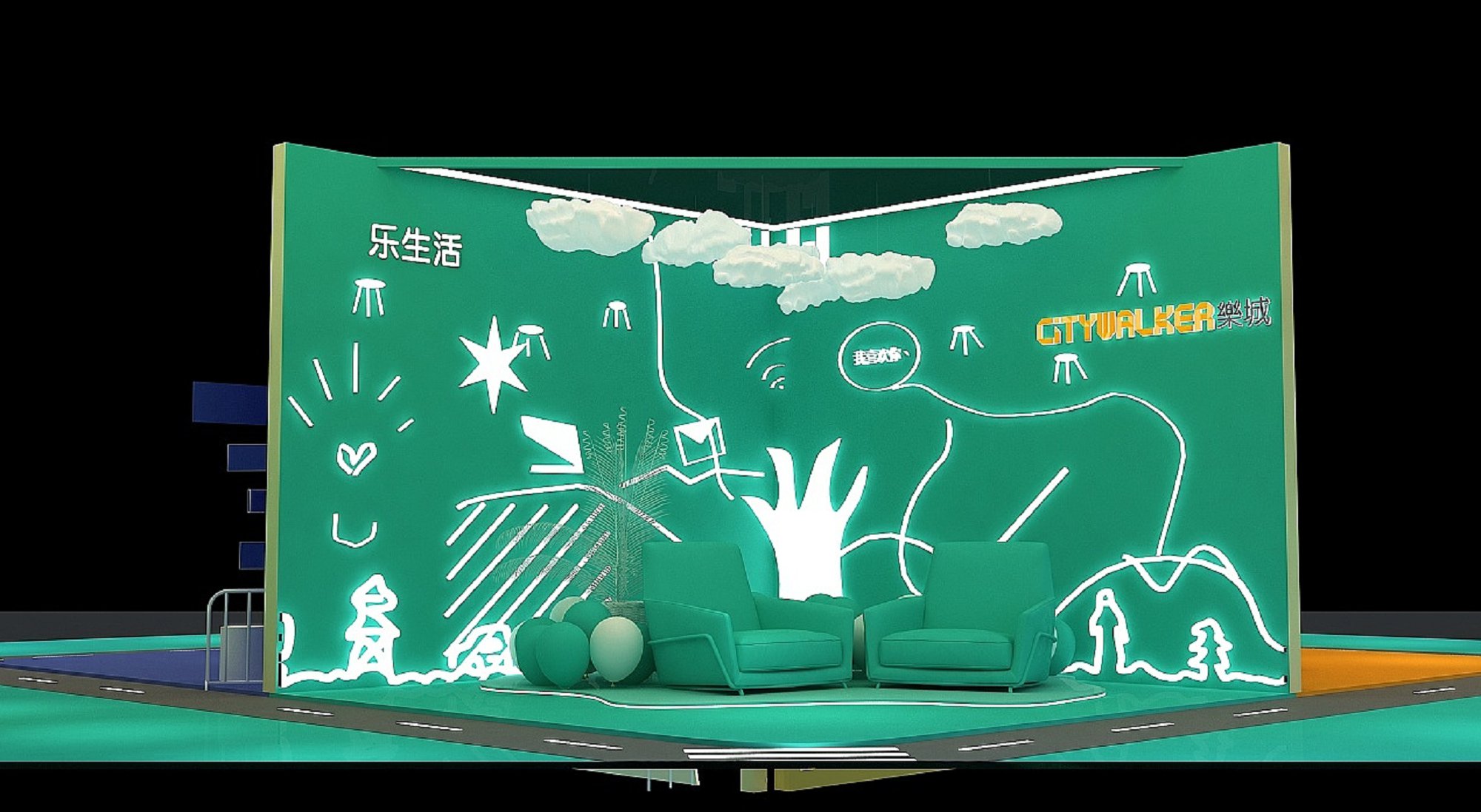 巧妙的運(yùn)用紅色、藍(lán)色作搭配,著重突出品牌和產(chǎn)品的展示,使整個(gè)展位時(shí)尚新穎。